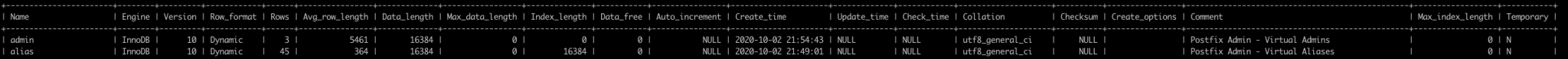 SHOW TABLE STATUS FROM your_db_name;
